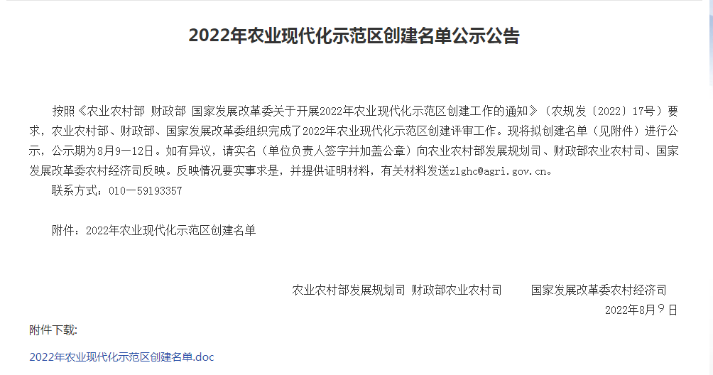 2022ÄêũҵÏÖ´ú»¯Ê÷Ä£Çø½¨ÉèÃûµ¥¹«Ê¾...
