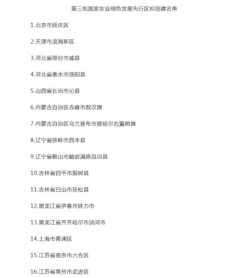µÚÈýÅú¹ú¼ÒũҵÂÌÉ«Éú³¤ÏÈÐÐÇøÄ⽨ÉèÃûµ¥